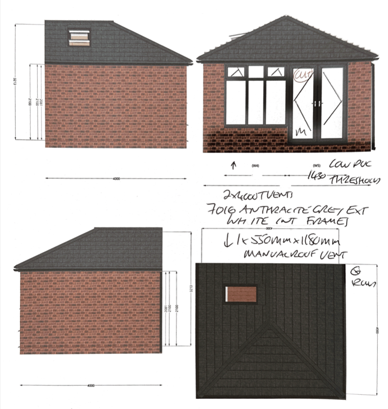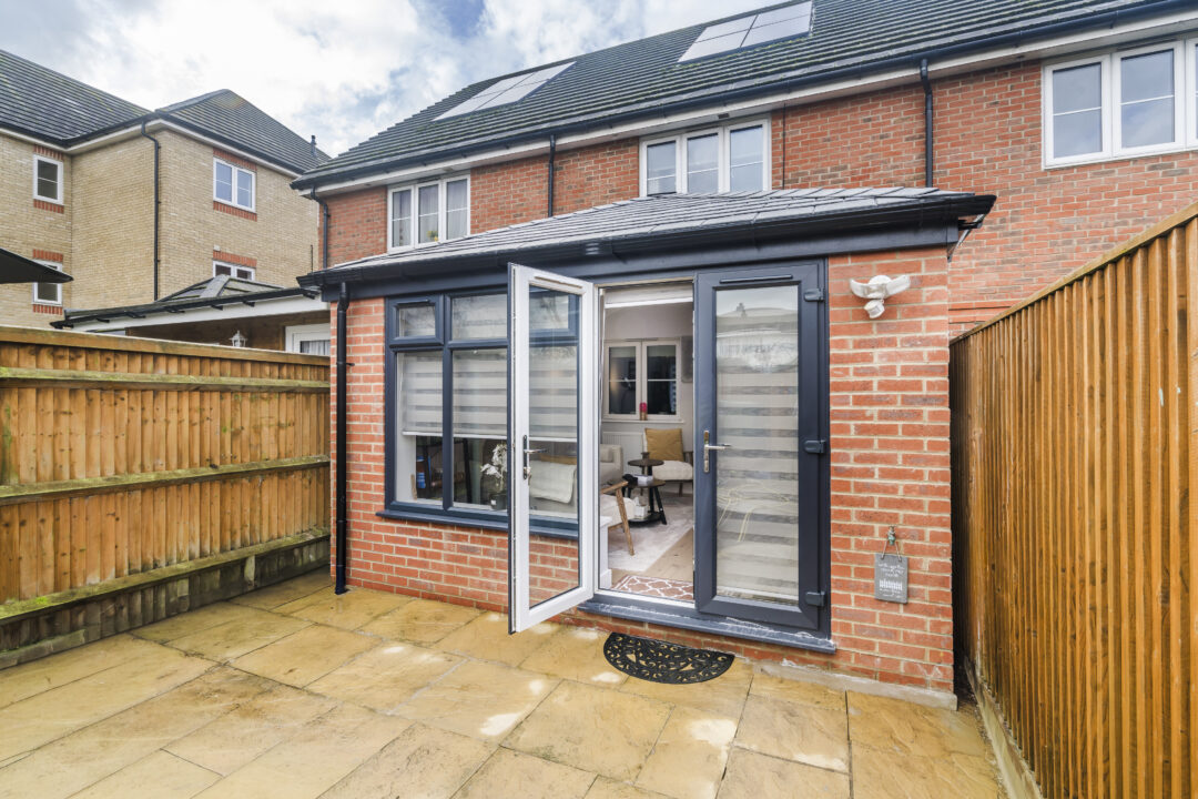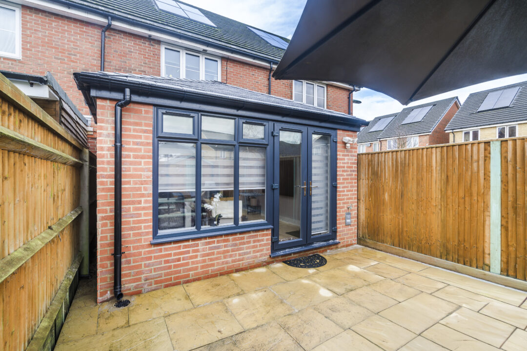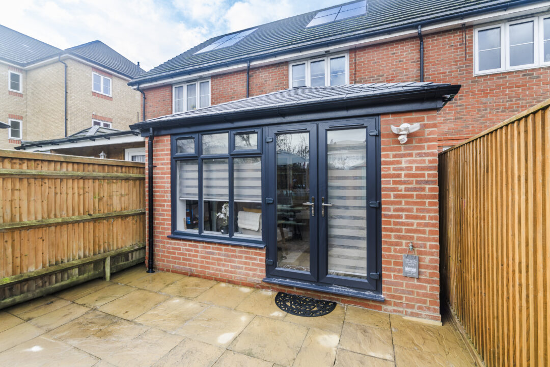 We recommended a 4,000mm tiled roof extension as the most realistic depth likely to receive approval. During planning, the customer looked into increasing the projection. After speaking with our planning specialist, we realised that a projection of 4,500mm or 5,000mm would likely not work. This is mainly because of the terrace layout and the size of the garden. The design includes full-height walls on both sides to maximise warmth and layout flexibility. Door openings were aligned with the internal doors to create a straight line from the house through to the garden, improving flow and usable space. A large rooflight was added to maintain light levels and provide ventilation. The anthracite frames and slate grey roof were selected to match the surrounding development.