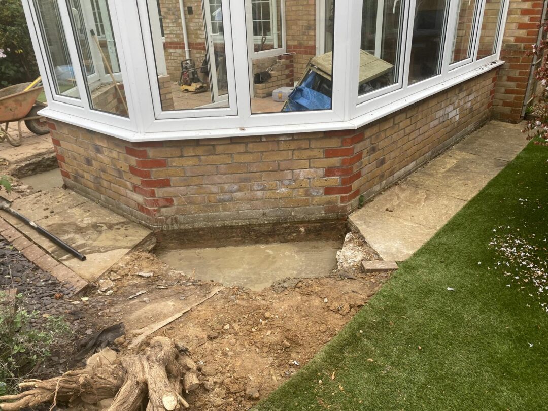 - The old conservatory has been fully removed as we prepare for a stunning new orangery upgrade.