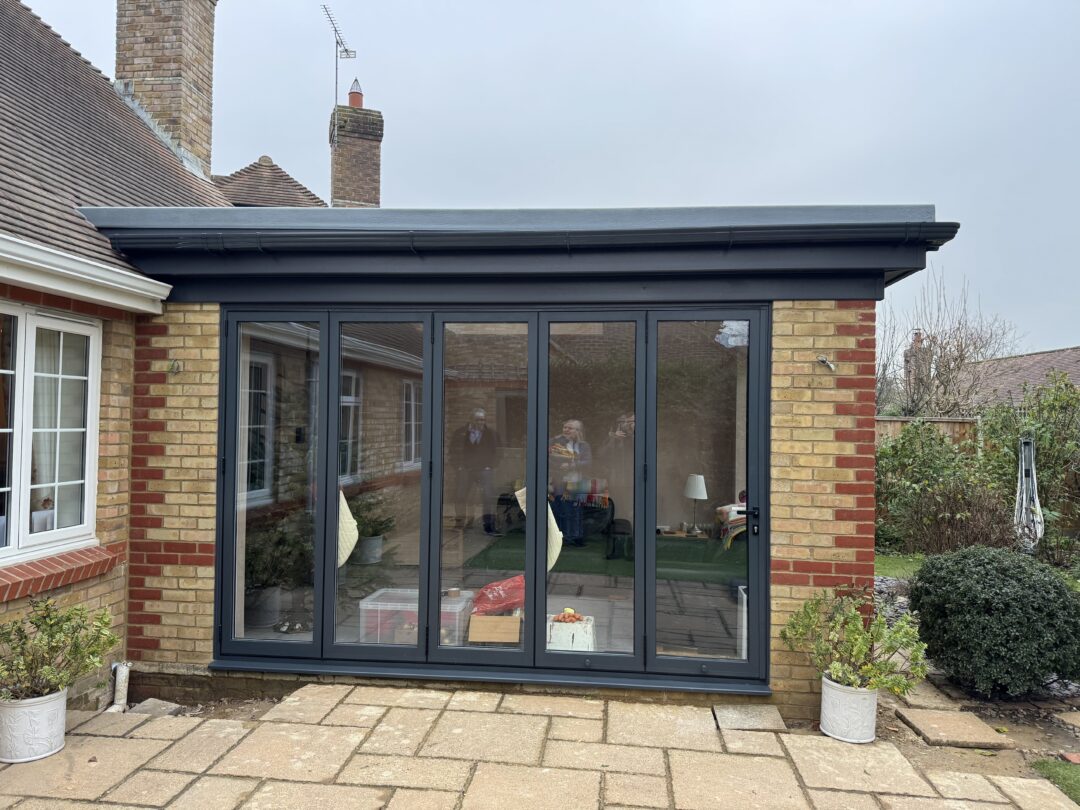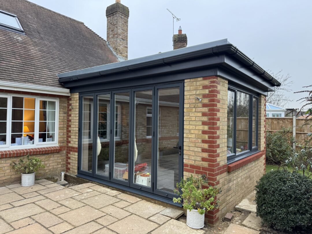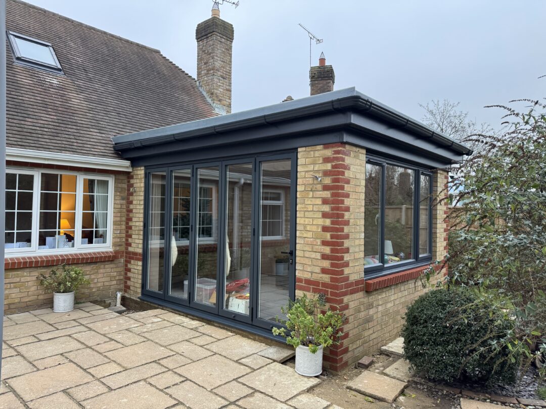 - Anthracite grey frames paired with buff brickwork, while retaining the original red brick detailing, creates a contemporary look that still ties beautifully into the existing house.