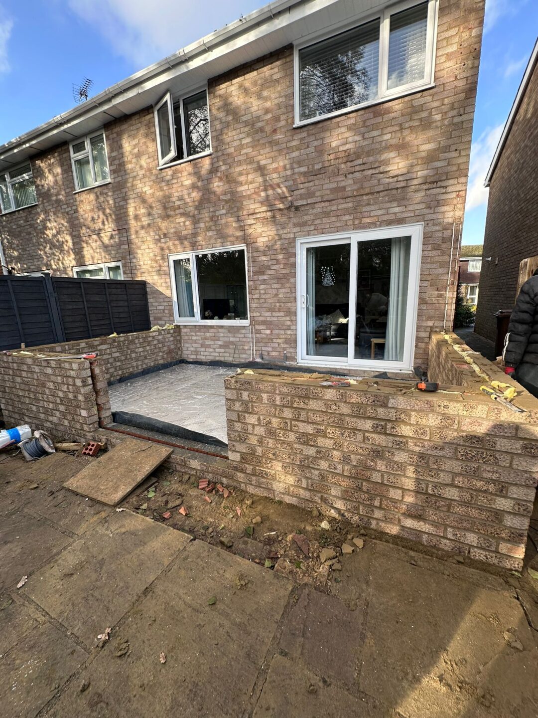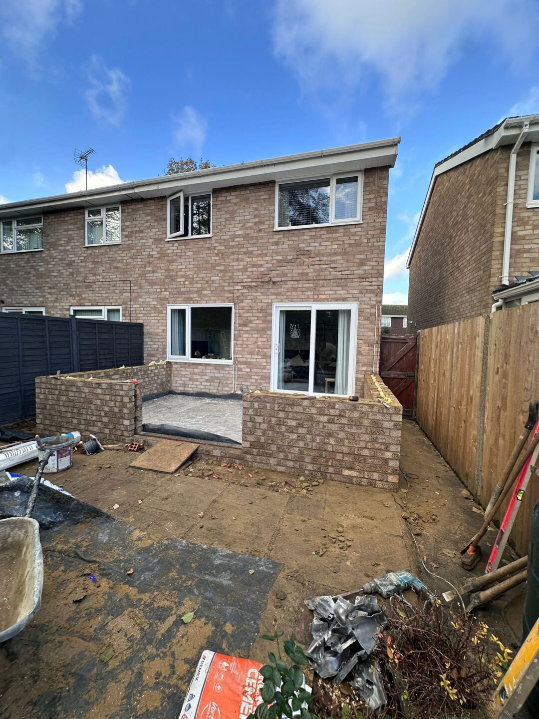 - The existing conservatory has been removed, with the new base and walls now in place.